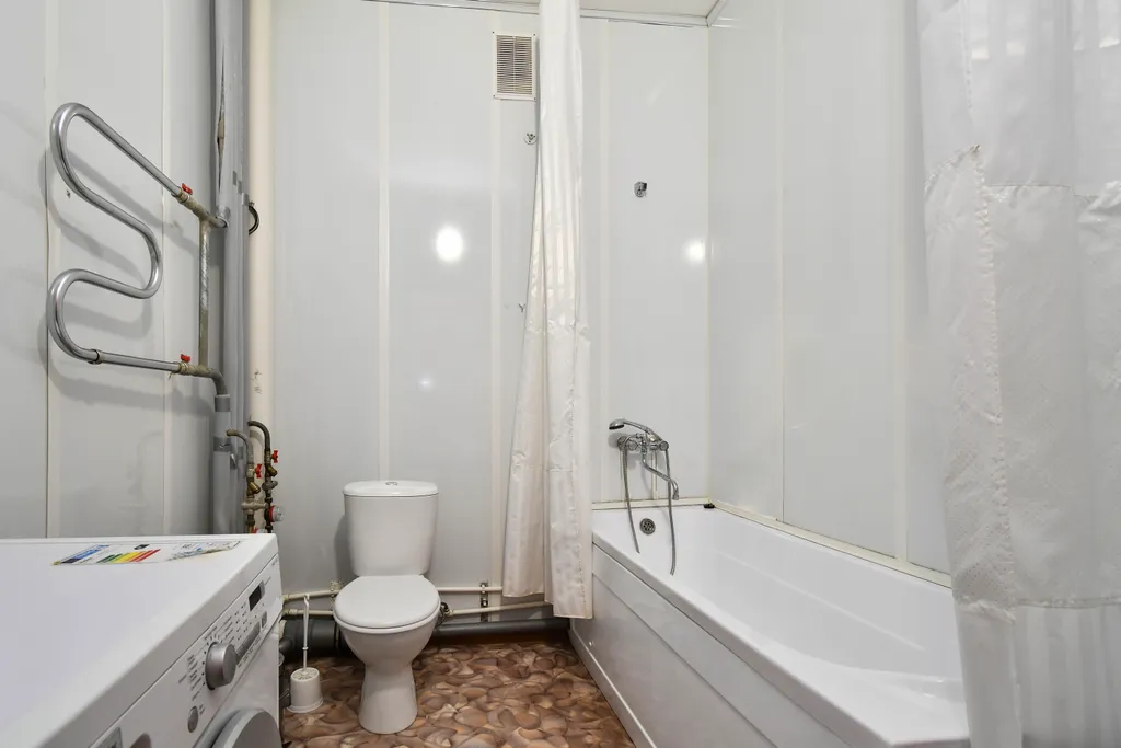 Полностью обставлена мебелью и необходимой бытовой техникой. Новая кровать и матрац с ортопедическим основанием! Также имеется фен, утюг, гладильная доска, сушилка для белья.