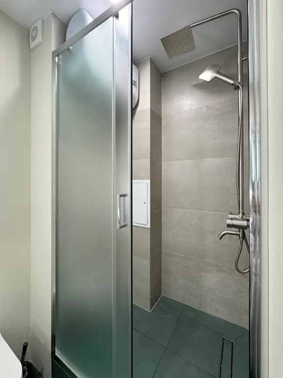 В ванной комнате для гостей: одноразовые зубные щетки с нанесённой зубной пастой, мыло, шампунь и гель для душа, ватные диски и палочки, туалетная бумага, фен, полотенца. Есть стиральная машинка и стиральный порошок. Утюг, гладильная доска и сушилка. В период отключения горячей воды работает бойлер.