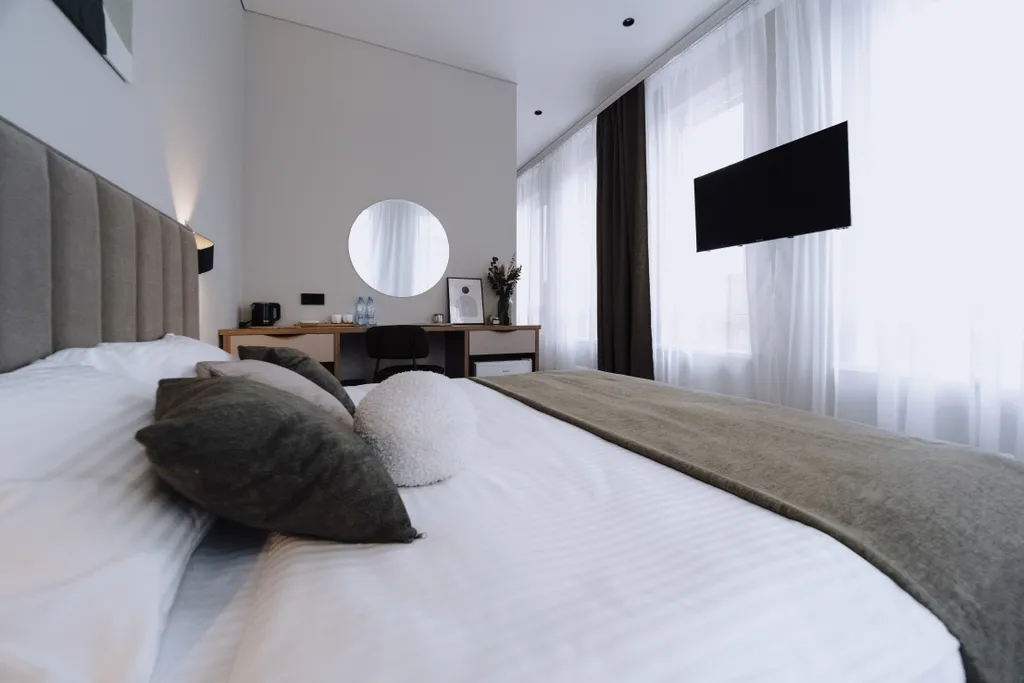 Номера категории «комфорт» с большими окнами созданы для того, чтобы сделать ваше пребывание незабываемым. Наслаждайтесь светом, пространством и уютом в каждом уголке вашего номера!