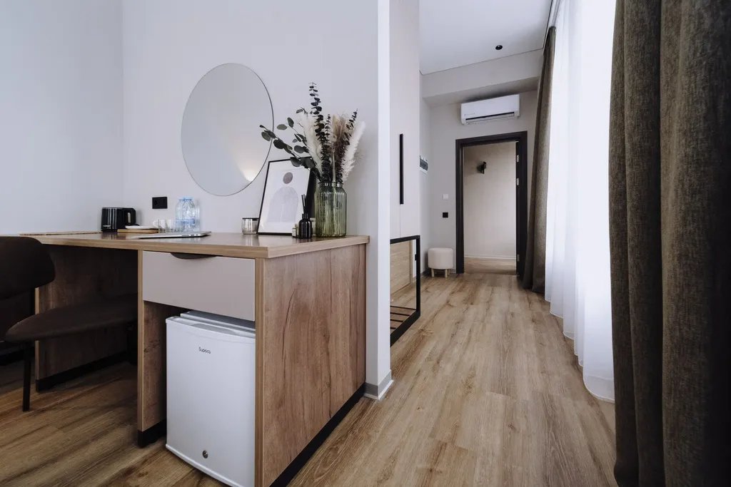 Мини-бар, предлагающий разнообразие напитков и закусок, чтобы удовлетворить ваши желания в любое время.