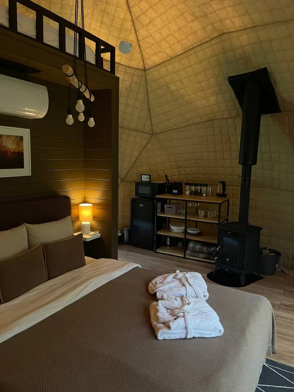 В каждой сфере есть все необходимое для комфортного размещения 2-4 человек: